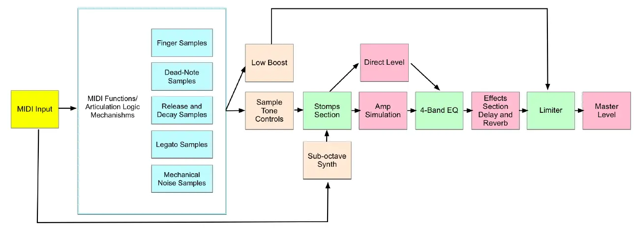 The sample library contains over 14000 samples, all of which are hand crafted to give you the most extensive and realistic finger-style vocabulary possible. Most sample categories feature eight velocity layers and six round robins, plus a fully natural sustain for each note.