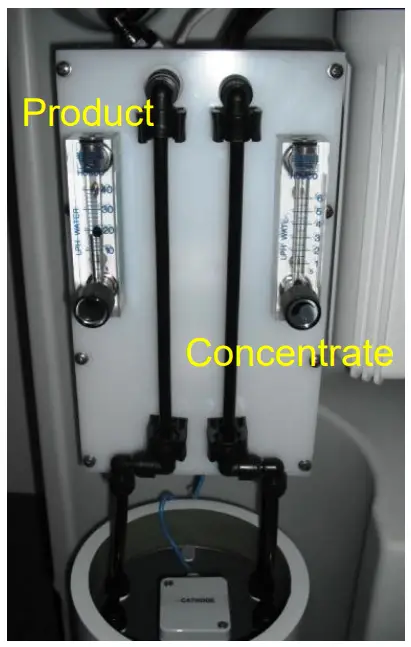 - After adjusting the concentrate flow, the EDI Product & Concentrate Flows must be adjusted while the unit is running. Start with the Product Flow: