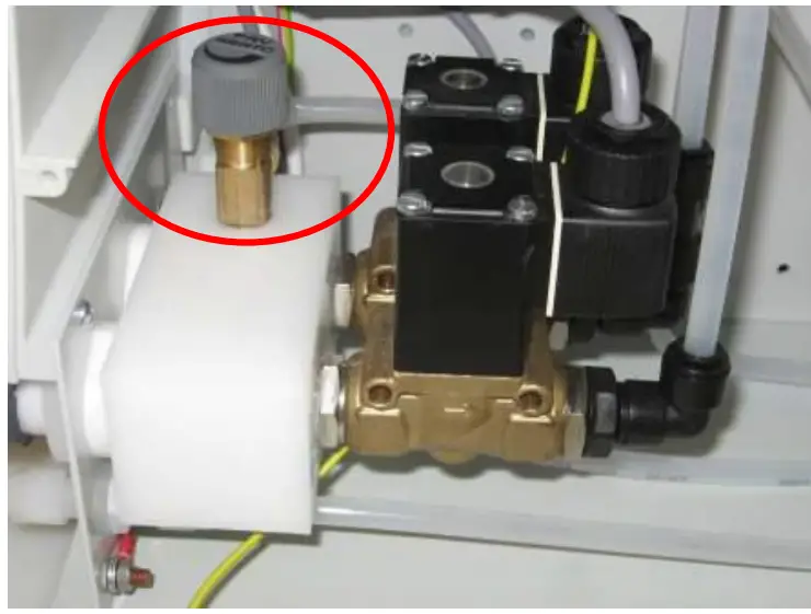 - Remove Blue Cover and locate the Pressure Hold Valve (V2)