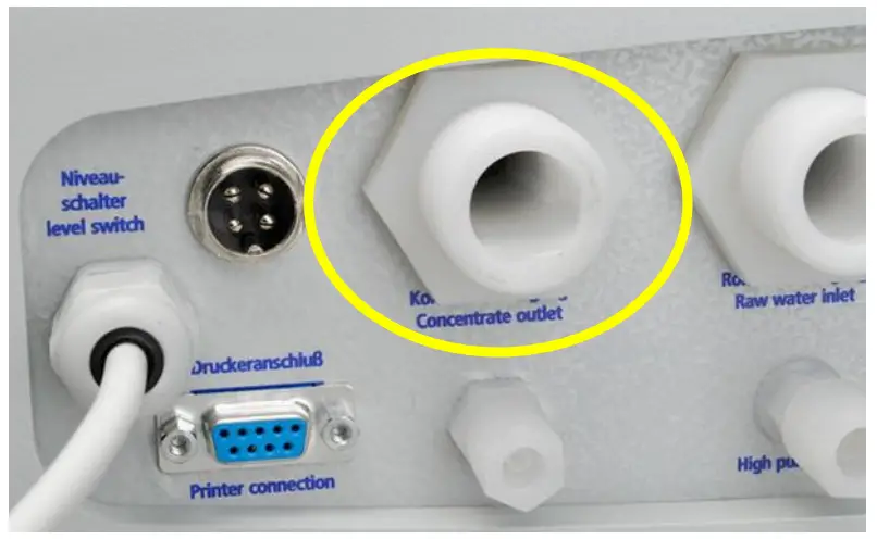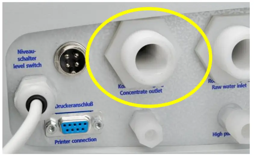 - Concentrate Outlet is located on the front of the unit, below the blue cover