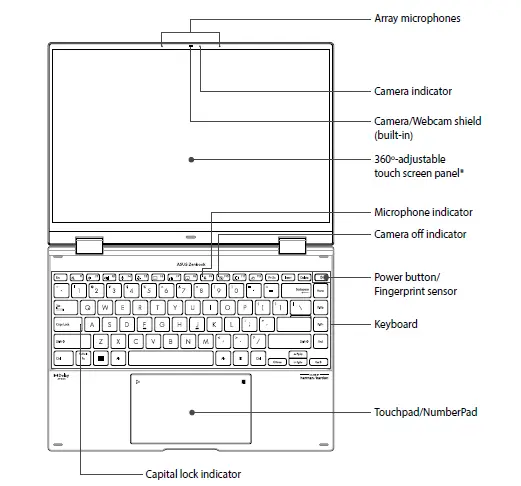 NOTE: The keyboard’s layout may vary per region or country. The top view may also vary in appearance depending on the Notebook PC model.