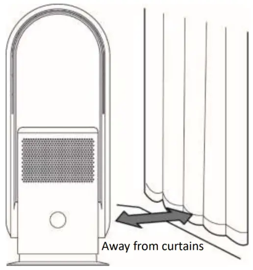 - Avoid blocking the air inlet when using. Stay away from the curtains to avoid objects blocking the air inlet and the fan not working.