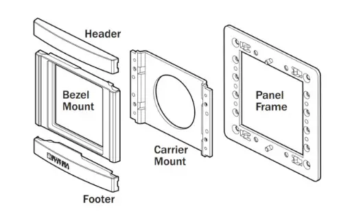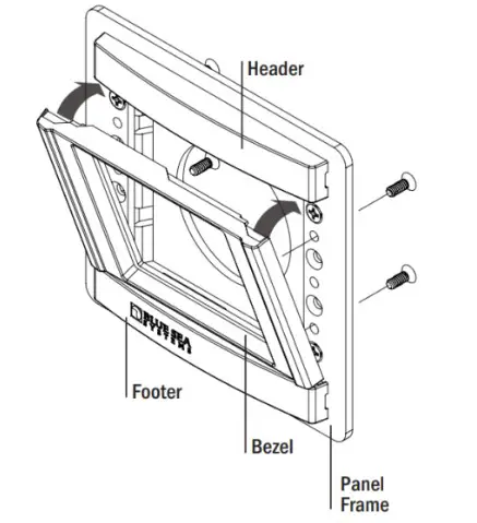 - STEP 2: Snap header and footer into mounting clips and post. Snap the mounting bezel into place with the flat edge up.