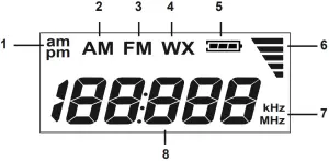 - WX BAND ICON – Indicates radio is in weather band mode.
