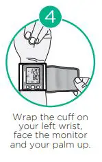 Wrap the cuff on your left wrist, face the monitor and your palm up.