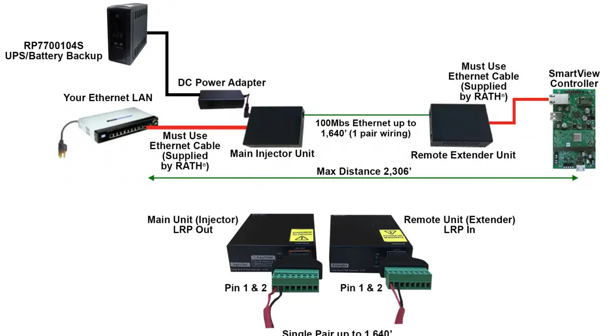 Wiring with Ethernet Extenders (2100-SVE) (Must be Supplied by RATH®)