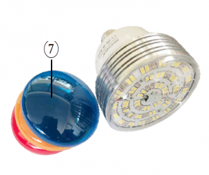 Step 4: To remove the clear dome, screw counterclockwise until the dome separates from the bulb. If you prefer a warmer light, add the orange dome by screwing to the front of the bulb in a clockwise direction until snug. Add the blue dome to add blue special effect.