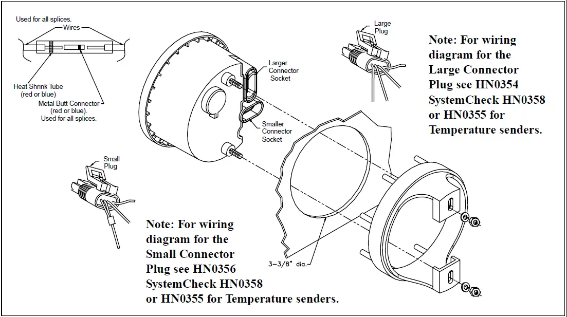 Follow the wiring diagram at the end of this manual for wiring connections. HN0356. SystemCheck® connections can be found on HN0358. Tachometer with Ambient Air and Water Temperature. Follow the wiring diagram at the end of this manual for wiring connections. HN0355.