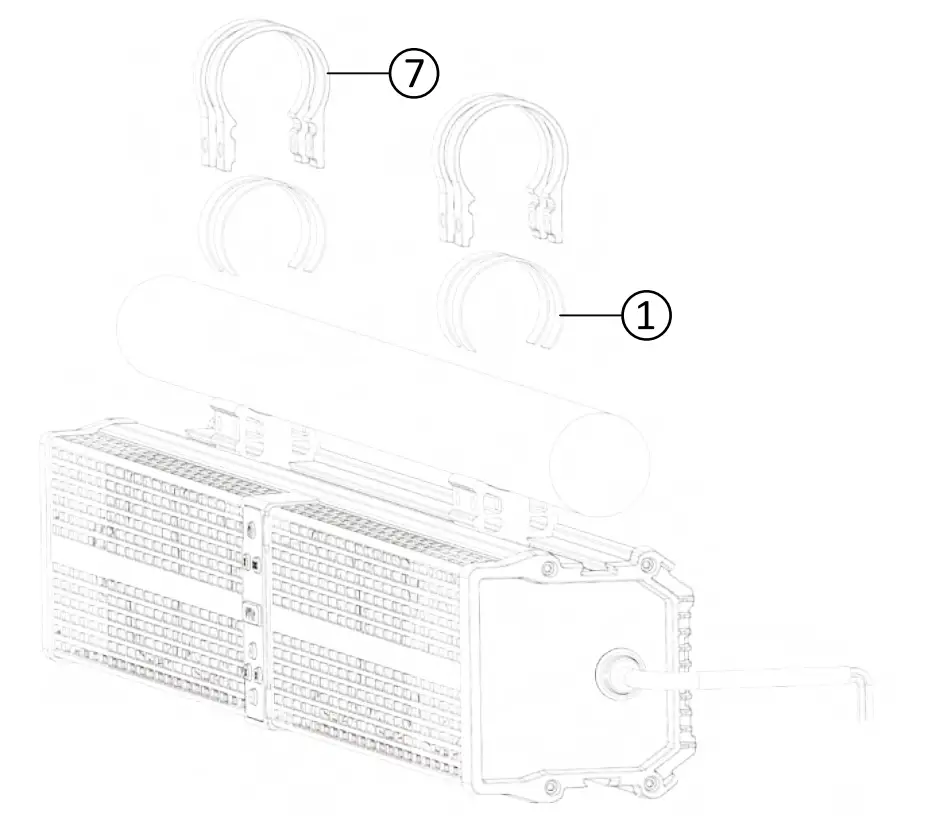 - Installing on the cage bar of 1.5″ to 2.0″. Wrap the rubber strip on the cage bar to prevent being scratched. And then, press the aluminum rings on the rubber strip. The screw mounting holes of the aluminum ring are aligned with the base.