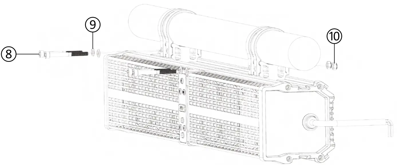 - The installation steps of the aluminum ring below are the same as above, after complete installation, the PWPSB3202 will be above the cage bar as shown in the figure.