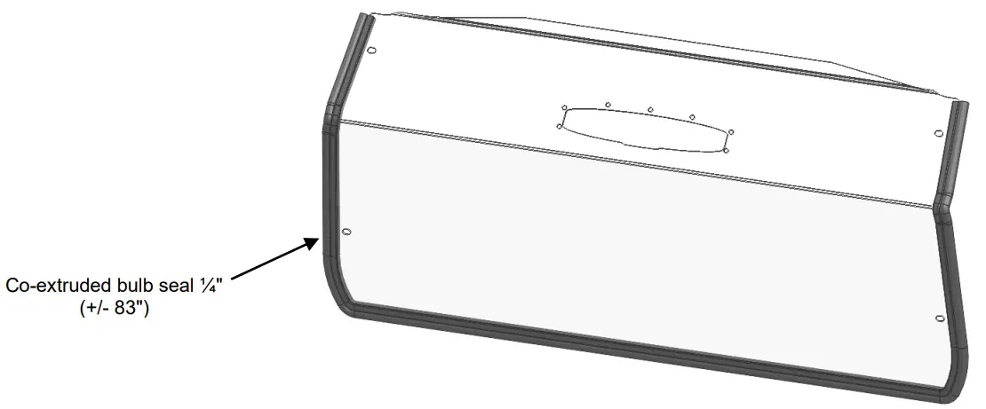 | C | Co-extruded bulb seal (¼”) | Includes: 84″ Co-extruded bulb seal (¼”) / #77-95BS [end user to cut to exact length] | 1 | |