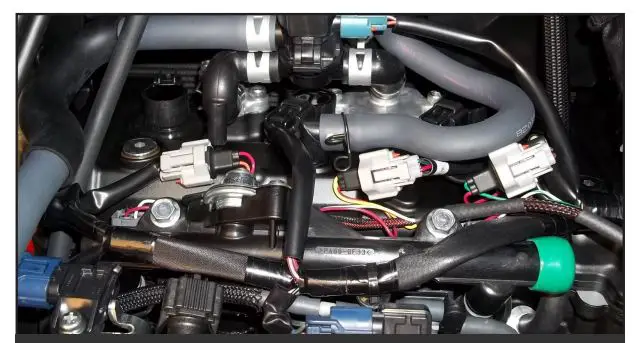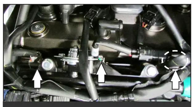 12 Continue routing the PC6 wiring harness across the top of the fuel rail.