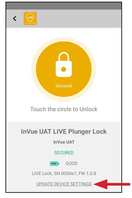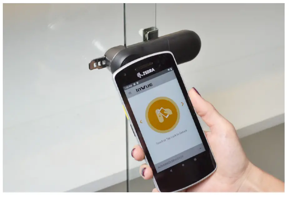 Open the InVue LIVE Access App on your smart device. Tap your device against the round panel on the lock.