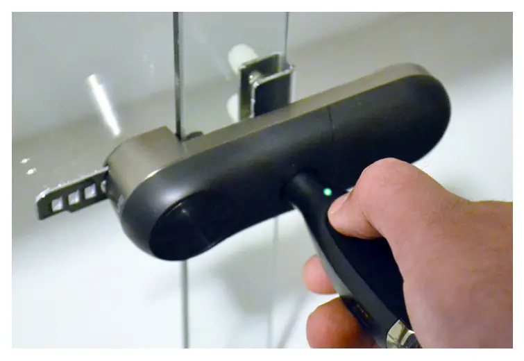22b Once confirmed by the App displaying “unlocked” and the LED flashing green, you will have several seconds to slide the door panels open. If the LED on the lock flashes red before the lock is opened, it will need to be unlocked again.