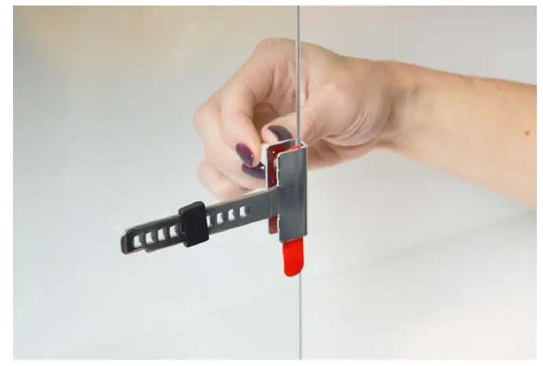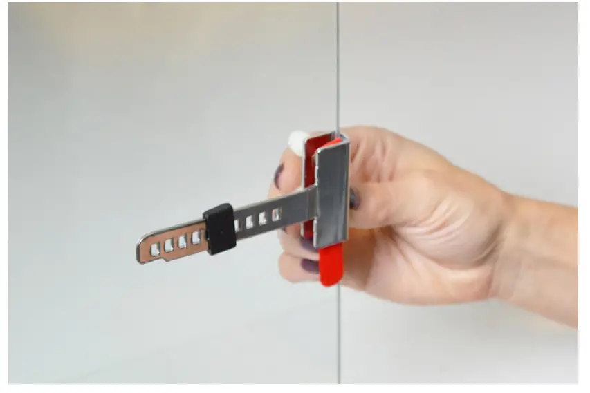 - Slide the panels into the closed position. The strike plate should emerge from between the 2 panels.