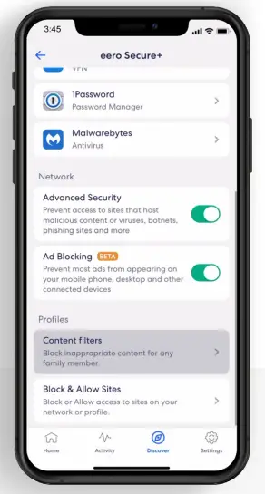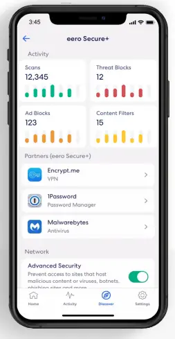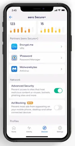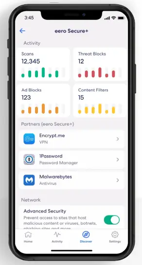 Turn on advanced security from the Discover tab in your eero mobile app.
