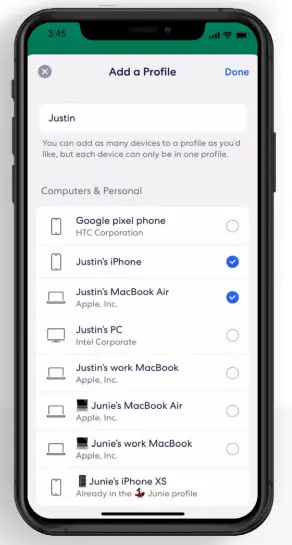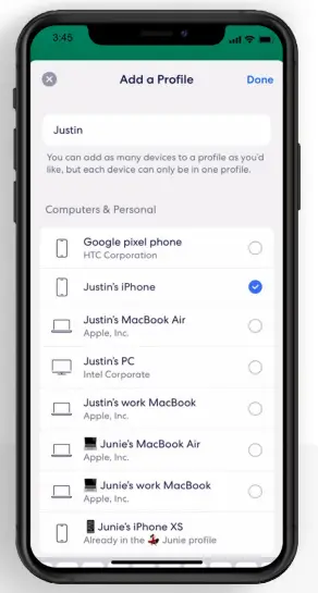 Create profiles so that you can set custom schedules, control internet access, and apply content filters by profile. - Select which devices to add to the profile.