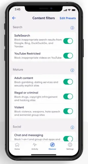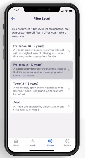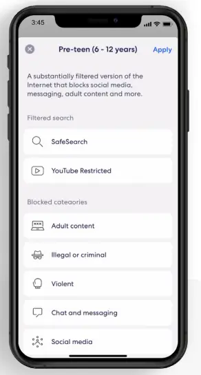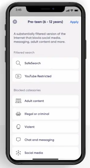Set restrictions for designated devices based on age range or content categories. - Tap the desired filter level.