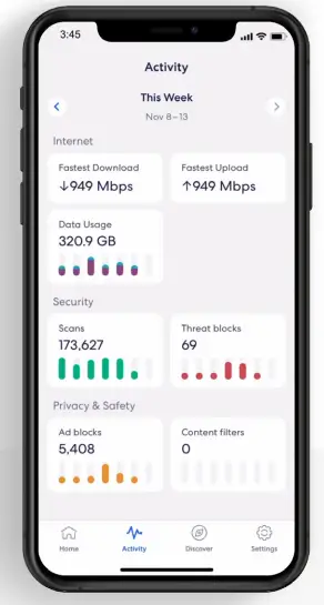 View scans and threat blocks activity from the Activity tab in the eero mobile app.