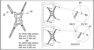 Measure the distance between the holes located at the back of your TV (these measures may form the shape of a square, or a rectangle) and check that these taken measures are within the VESA (*) range for this wall