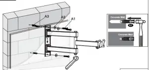 Install wall plate using lag bolts [A 1 ], washers [A2] and anchors [A3]. Be sure the anchors [A3] are seated flush with the concrete surface. Tighten the lag bolts [A 1] only until the