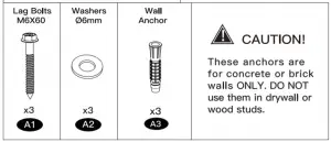 Ensure the wall plate is securely fastened to the wall before continuing on to the next step.These anchors are for concrete or brick walls ONLY. DO NOT use them
