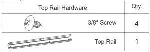 - FOR SAFETY REASONS, THE TOP RAIL MUST BE SECURELY FASTENED WITH ALL FOUR (4) SCREWS.