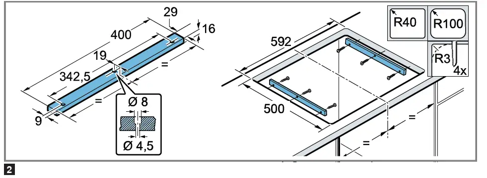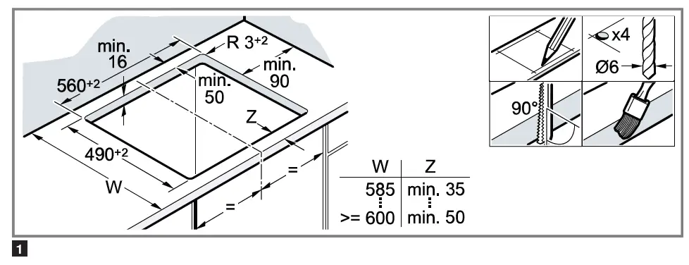 The worktop must be level, horizontal and stable. ¡ The fitted unit must be heat-resistant to at least 90 °C.