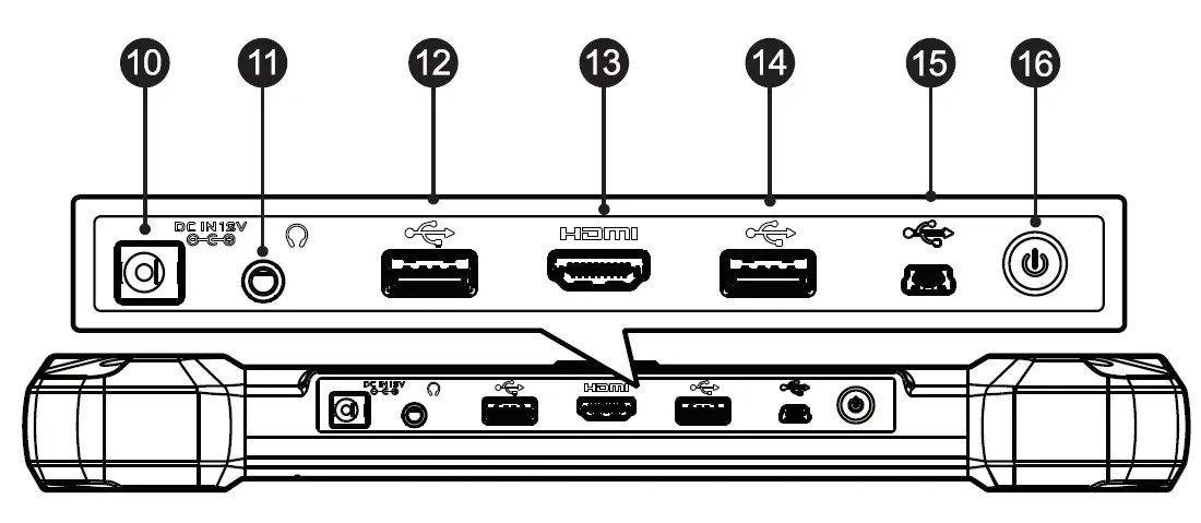 - Power Port – connects the device and the power source with the adapter.