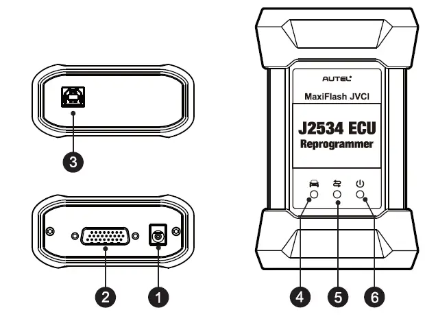 - Vehicle Connector – connects the device to the vehicle’s DLC via a standard high density DB-26 MVCI – OBDII cable.