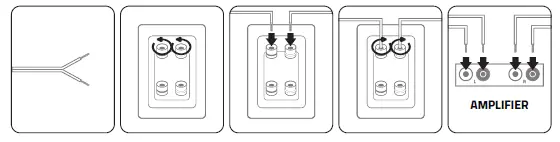 Take care to maintain the correct polarity when connecting (+ or RED) to (+ or RED) and (- or BLACK) to (- or BLACK). Before attempting the connection make sure that your amplifier’s speaker wire connectors will accept a second set of cables and that the equipment is turned OFF while you make the connections.