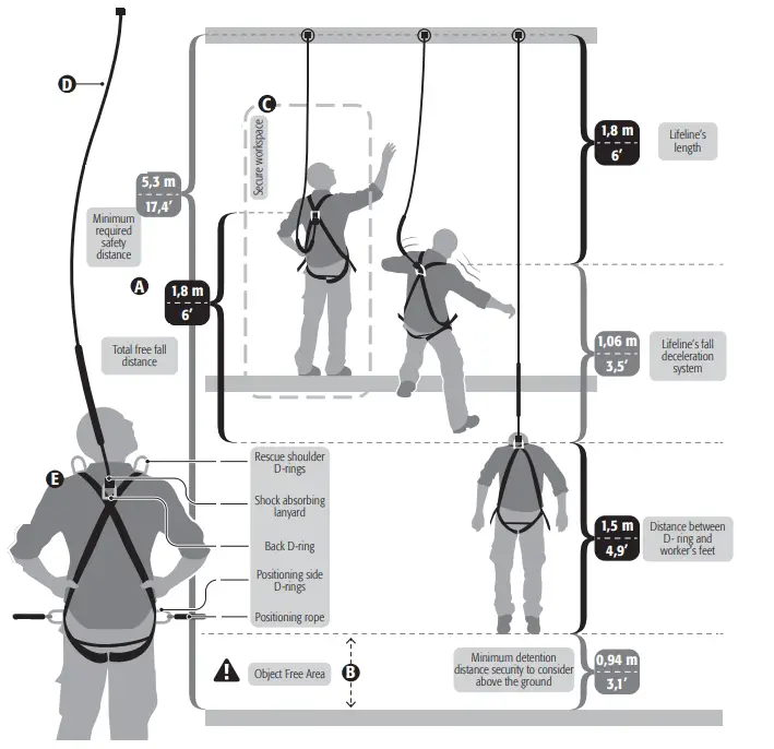 - The free fall distance should never exceed six feet (6’). (A).