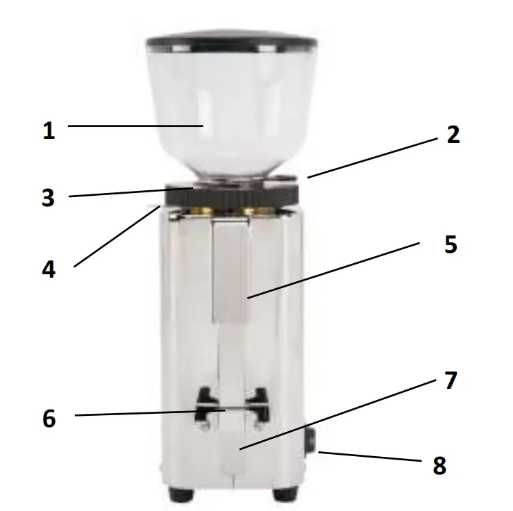 - 1 Grinder with bean hopper and lid