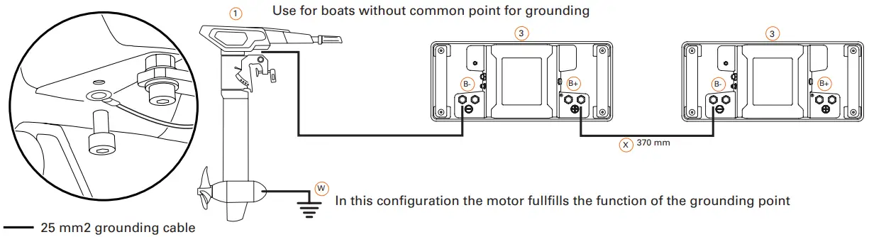- An earthing point is required for your Torqeedo system. Take into account the connection and the cables required for this in your planning. The required cable cross-sections can be found in the section Tools, equipment and material.