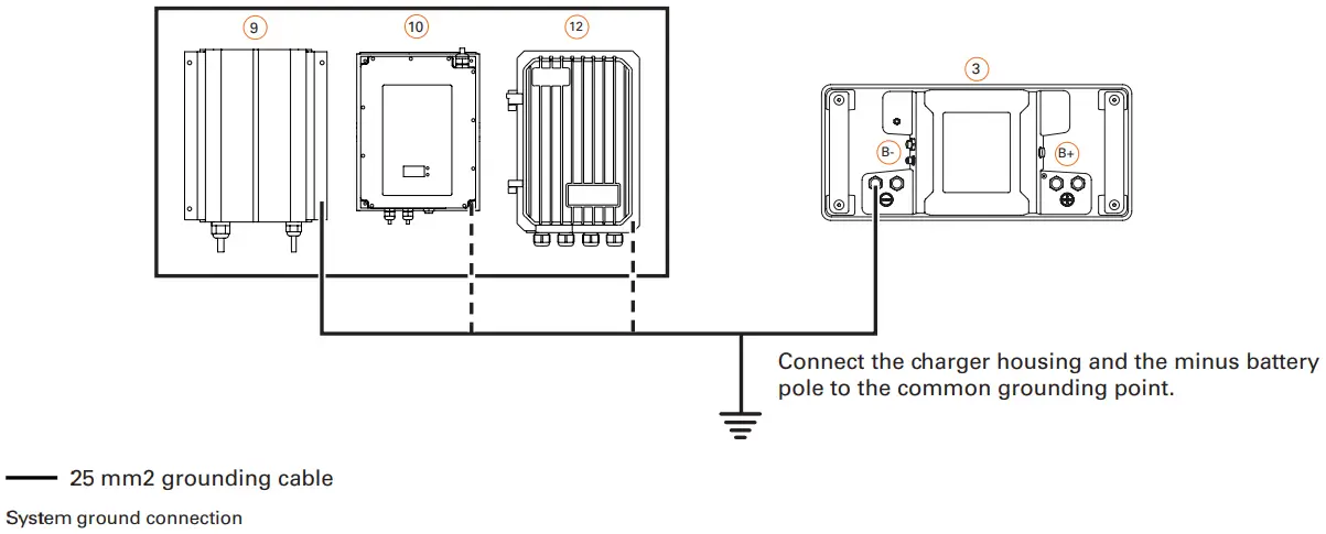 | W | System ground | min. 25 mm2, not included | |