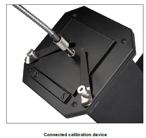 When the spectrometer is connected to the CAL2, it can calibrate your system, generate a new illuminant, or change the intensity. Two different adapter plate sizes are provided with the CAL2 device to connect the spectrometer. The smaller plate lets you see the actual light setting next to the calibration device, and the larger plate ensures a perfect measurement in the center of the window. Attach the spectrometer to the plate using the fiber cable, and then attach the plate to the CAL2 using the two metal clamps, as seen below.