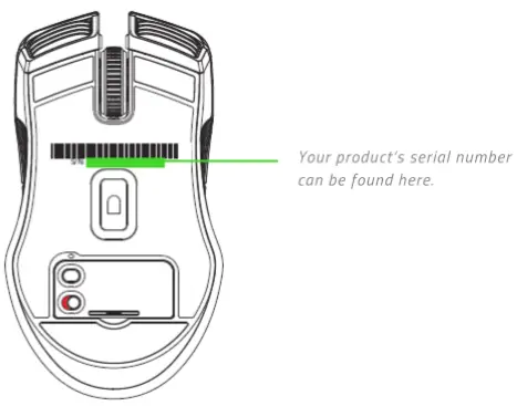 Turn the mouse over and you will find the product serial number on the product ID sticker just below the scroll wheel.