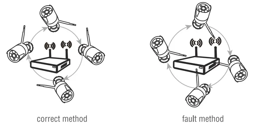According to the signal transmission characteristics of the antenna, in order to ensure the optimal image transmission effect of the wireless NVR Kit, it is required: