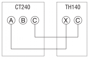 Connect CT240 terminals A and C to TH140 terminals X and C. You must respect the polarity.