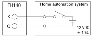 Connect the TH140 to the home automation system as displayed in the wiring diagram.