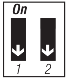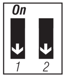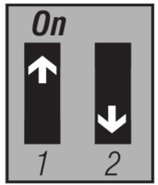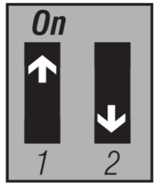 Select the span using switches #1 and #2. The default temperature span is 0.5°C (0.9°F). For example, if the temperature setpoint is 20°C (68°F), the heating system will turn on at 19.5°C (67.1°F) and turn off at 20.5°C (68.9°F).