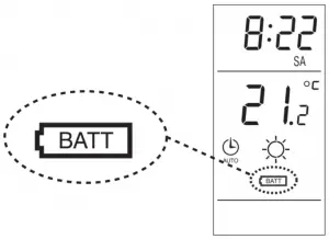 The TH140 will display an icon indicating that the batteries must be replaced. This icon will be displayed for 60 days; after this delay, the TH140 will shut down the heating unit.