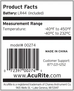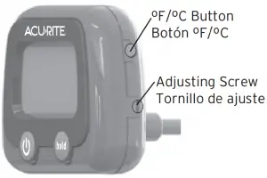 This unit has been calibrated and should read temperature accurately. To verify accuracy, fill a container with crushed ice and add water. Wait approximately 1 minute. Insert 2″ of the probe into ice bath for 10 seconds, or until the temperature reading stabilizes. If unit doesn’t read 32°F/0°C, turn adjusting screw left or right to correct the temperature to 32°F/0°C.
