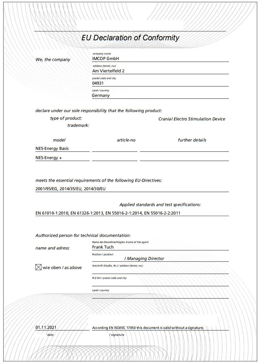 Note: The use of NES-Energy cannot replace a visit to the doctor. Therefore, please consult your doctor if you are not sure where your symptoms are coming from or if you suffer from acute or chronic symptoms.