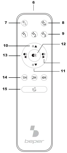 Night mode can also be selected: fan speed stays on low, while the LED light is set on the lowest intensity level and warm color; to activate this mode, press the relevant key on the remote controller.