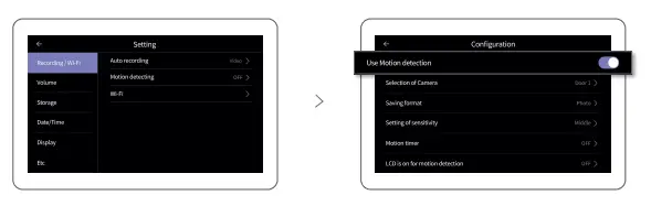 Set whether to use motion detection in [Setting] → [Recording/Wi-Fi] screen.