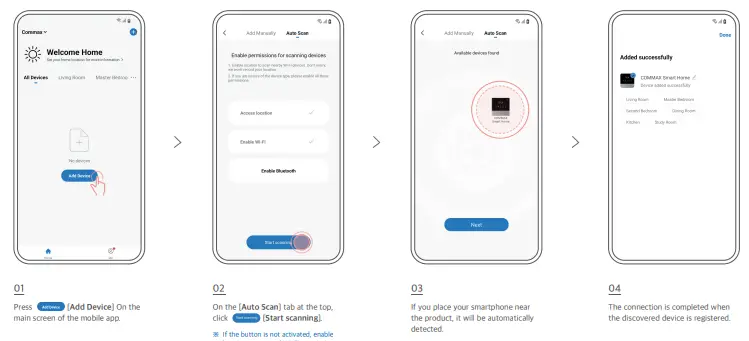 Before connecting, make sure that the product and the smartphone are connected to the same Wi-F