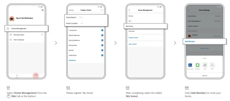 Move the invitation code received via text message, etc. to [Home Management] → [With Family] to register and then use all functions on your smartphone
