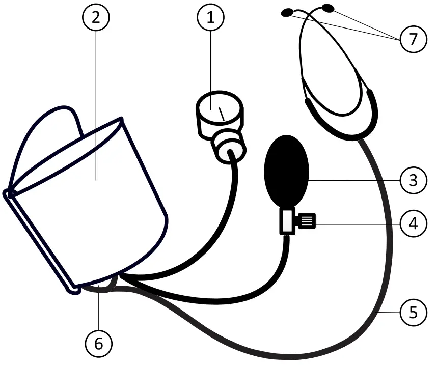 - Remove the cuff and the stethoscope.
