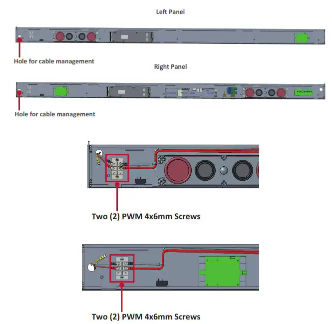 - You can also reroute the power cable at two positions for cable management. Loosen the two (2) PWM 4x6mm screws, pull the power cable out, thread the power cable through the hole and then fasten the screws tightly.